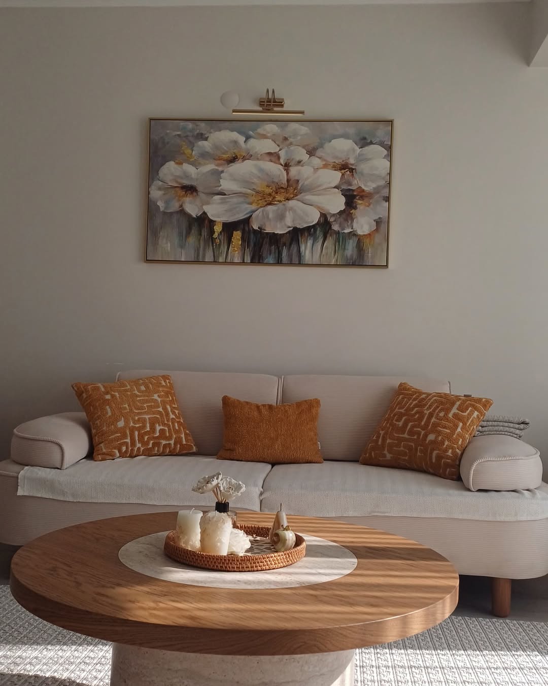 Ayrıca, tabloların yanı sıra duvar dekorasyonunu tamamlamak adına diğer dekoratif unsurları da kullanabilirsiniz. Tablonuzun altına birkaç farklı boyutta ve şekilde raf ekleyerek, tablo ile birlikte farklı dekoratif objeleri sergileyebilirsiniz. Aynı zamanda, tablonuzun yanına asma bitki rafları ekleyerek yeşillikleri iç mekanınıza taşıyabilirsiniz.