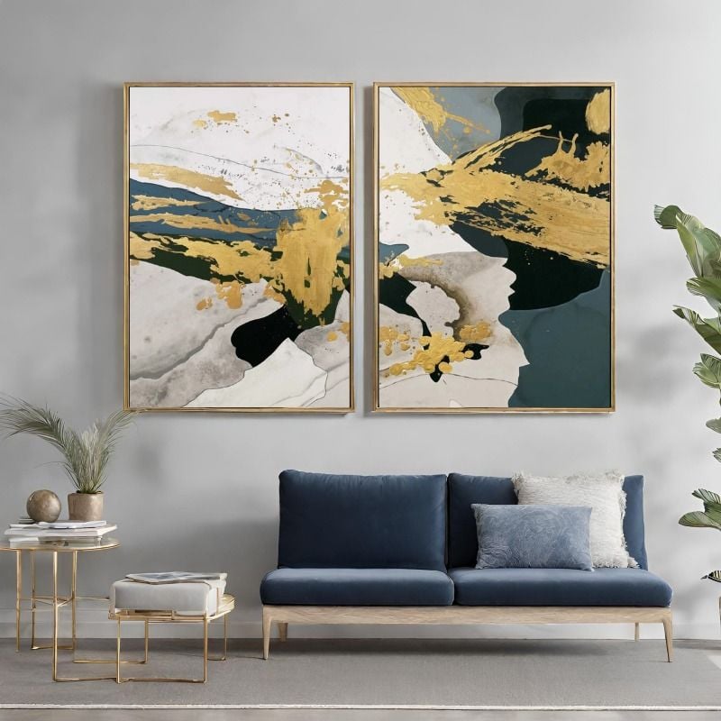 İkili Kanvas Tuval Tablo Altın Detaylı Soyut Kod: EYL18
