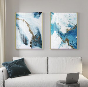 İkili Kanvas Tuval Tablo Blue&White Ink Kod: 3095-8-K