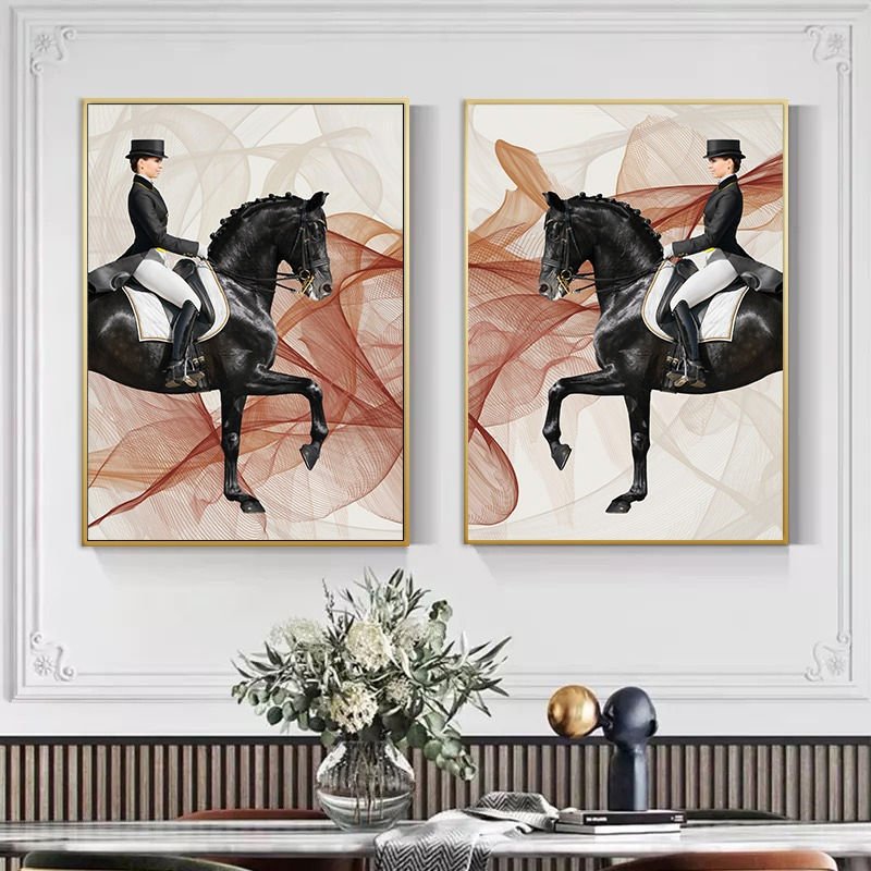 İkili Kanvas Tuval Tablo Royal Horse Kod: H120-K
