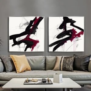 İkili Kanvas Tuval Tablo Kırmızı Siyah Soyut Kod: H50-K