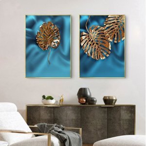 İkili Kanvas Tuval Tablo Mavi Saten Kod: LK685-K