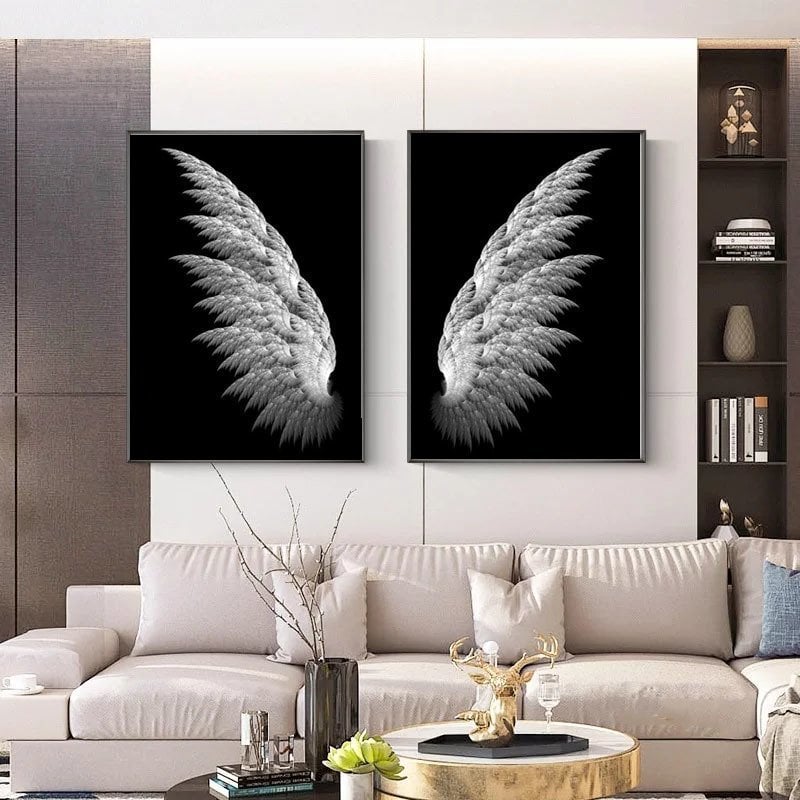 İkili Kanvas Tuval Tablo Beyaz Kanat Kod: Y751-K