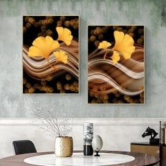 İkili Kanvas Tuval Tablo Gold Yapraklar Kod: YC0086