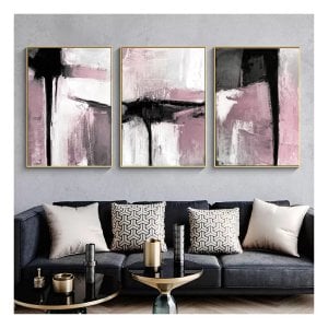 Üçlü Kanvas Tuval Tablo Seti Pembe ve Siyah Soyut Kod: 3268-K