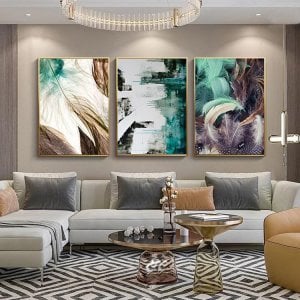 Üçlü Kanvas Tuval Tablo Seti Soyut Tüyler Kod: Y742-K