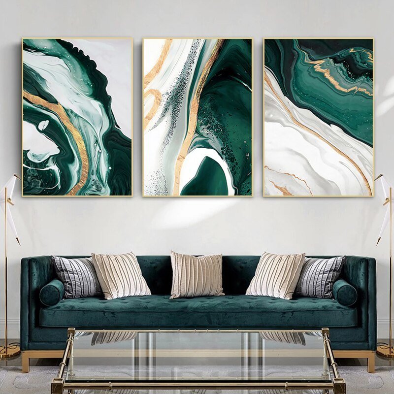 Üçlü Kanvas Tuval Tablo Seti Zümrüt Dalgalar Kod: Y895-K
