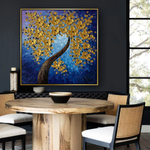 Yağlı Boya Dokulu Altın Hayat Ağacı Tablosu 90x90cm