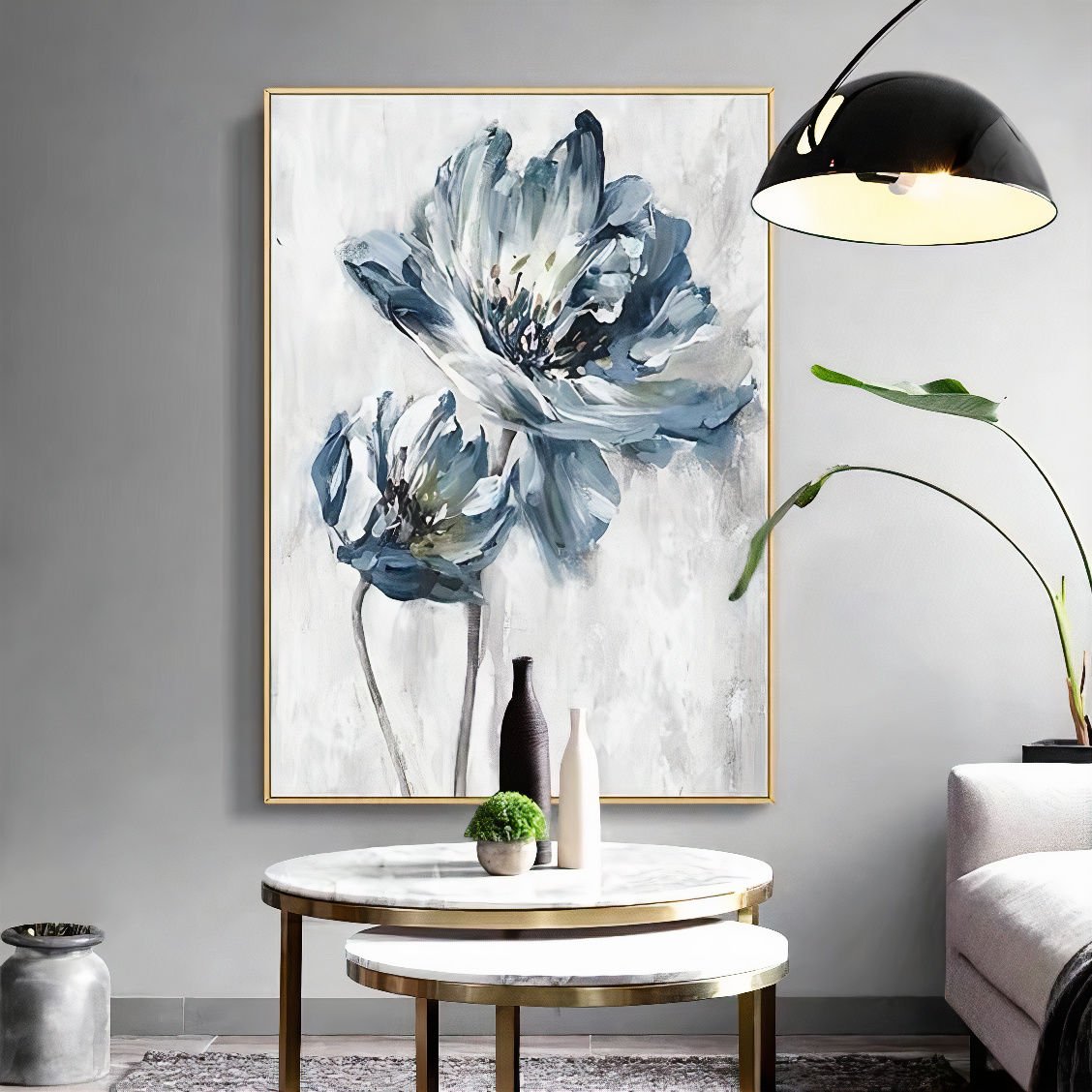 Yağlı Boya Dokulu Kabartmalı Mavi Çiçek Tablo 70x100cm